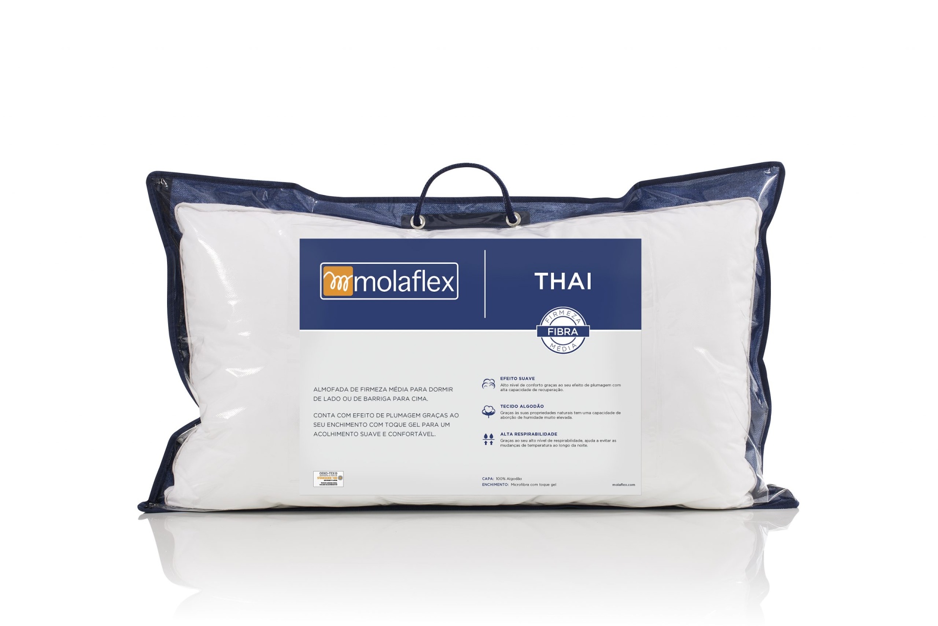 Travesseiro Molaflex Thai embalado com etiqueta azul
