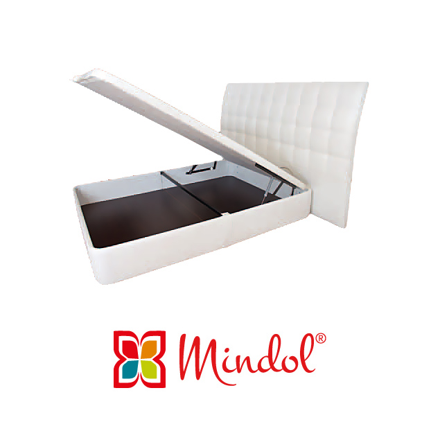 A estrutura metálica em tubo de aço com tratamento antioxidante possui travessas centrais para reforço do estrado lâminas e base. Os amortecedores que facilitam a elevação do estrado, estrado de lâminas de madeira para uma maior ventilação do colchão.