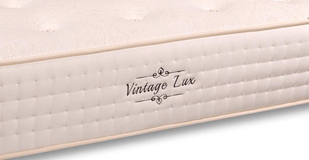 Colchão branco com texto 'Vintage Lux' bordado na lateral