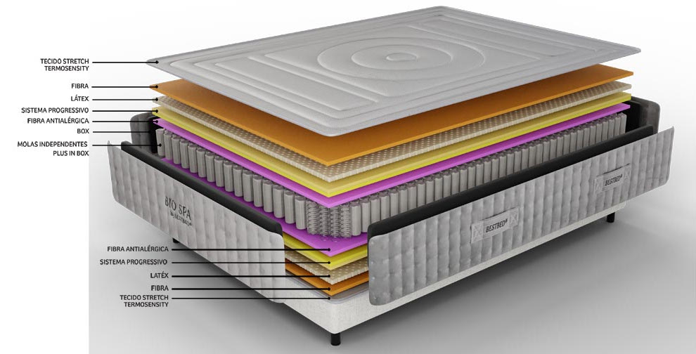 O Bio Spa combina perfeitamente a alta respirabilidade do Látex com o frescor e a maciez extra do tecido Stretch Terensensity.