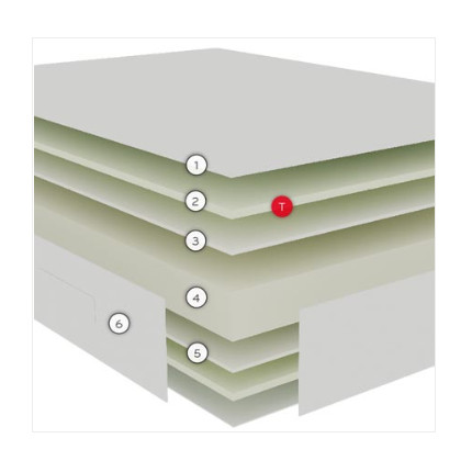 A primeira camada de Viscofoam® adapta-se à forma do corpo, permitindo que os músculos se relaxem e que a coluna adote uma postura natural e ergonómica. Além disso, reduz a pressão sanguínea e dispersa o calor que libertamos enquanto se dorme.
