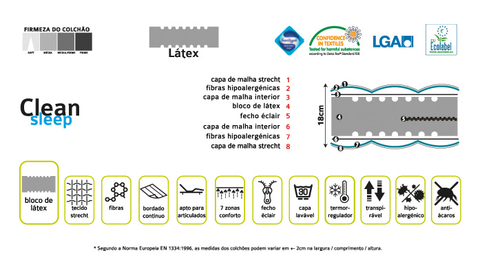 O látex usado neste modelo é de alta qualidade, e a seiva da borracha utilizada para a produção do bloco proveniente de florestas de certificadas. O látex, devido à sua estrutura flexível, absorve a pressão excessiva e reduz movimentos durante o sono, proporcionando um sono muito mais reparador.