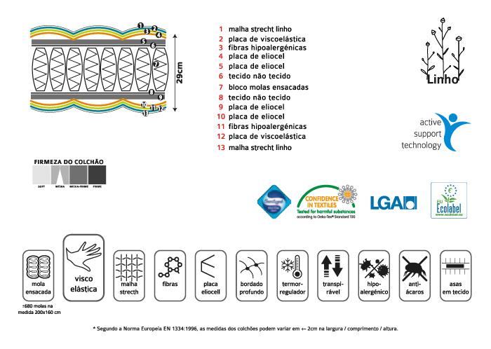 O linho é um tecido natural, nobre, que provoca urna sensação de frescura devido à sua excelente capacidade de recuperação da humidade, não acumula eletricidade estática e tem unna textura super suave. Estas qualidades são perfeitas para um sono de qualidade.