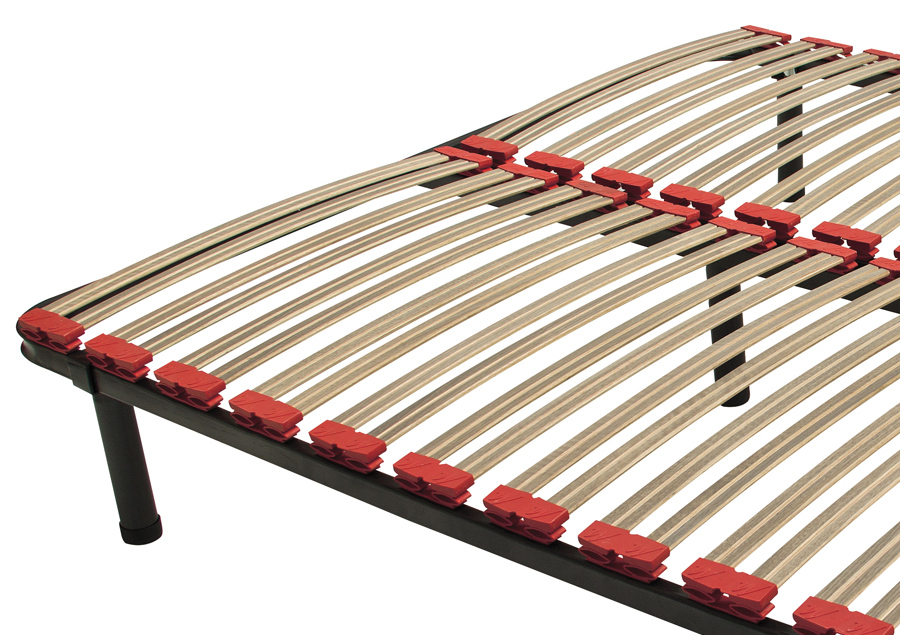 Ripas em madeira de eucalipto coladas em finas camadas, com canais de circulação de ar forçado e terminais em borracha ambos flexíveis com o intuito de aumentar a durabilidade e adaptabilidade do colchão