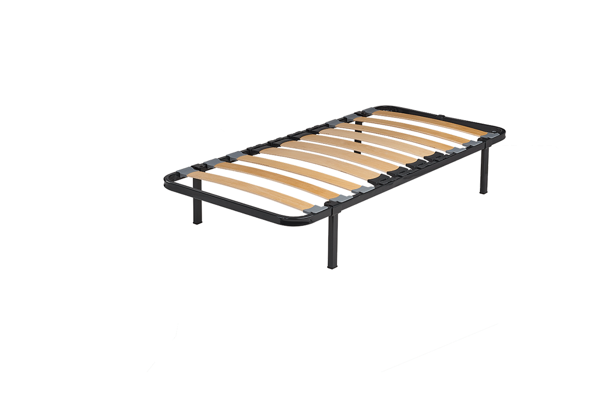 - Estrado com 10 filas de lâminas de madeira faia vaporizada com diferentes tamanhos (11 filas nas medidas 200cm). Reforço lombar através das 4 lâminas de maior tamanho (5 nas medidas 200cm), obtendo uma maior superfície de apoio.