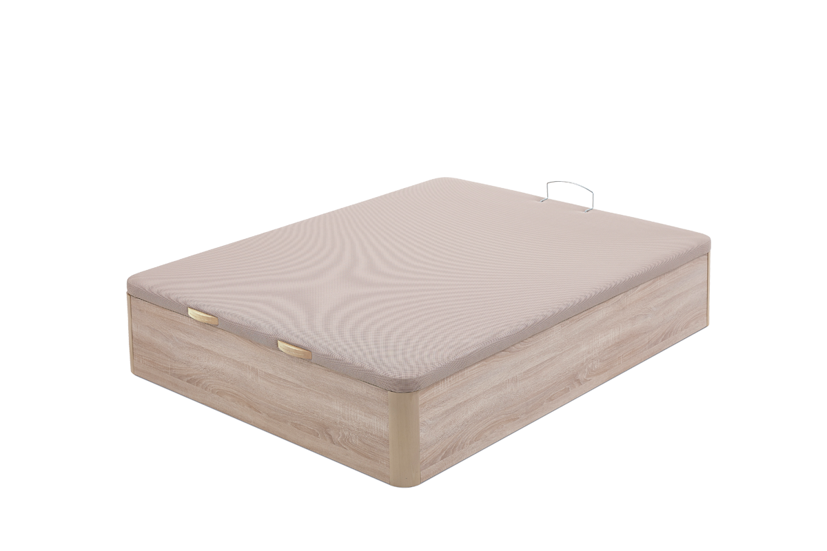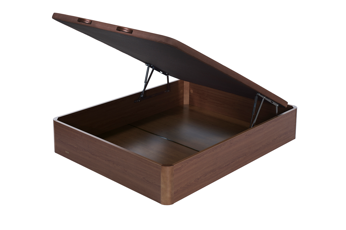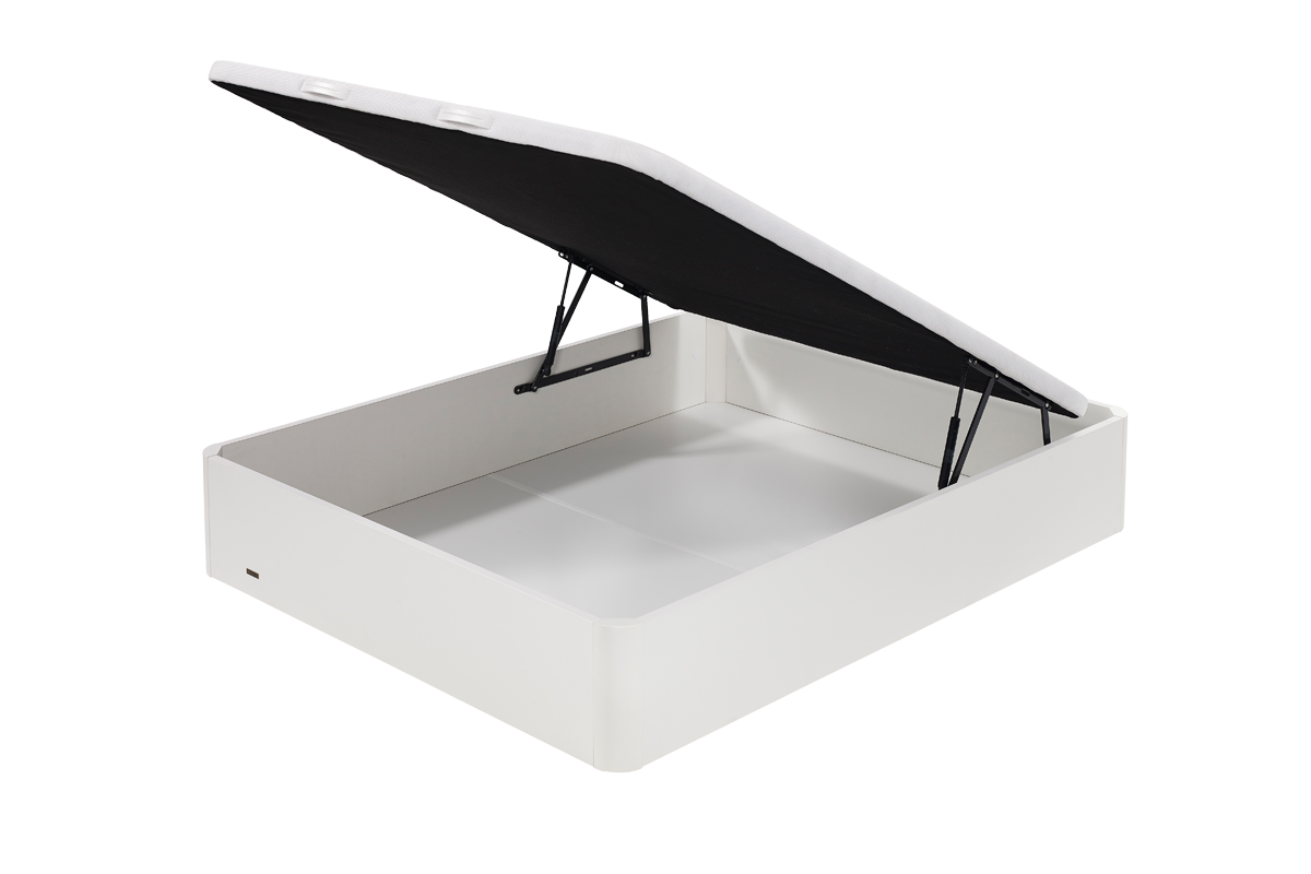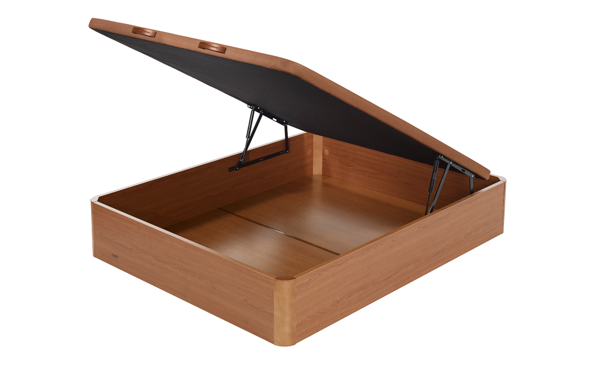 Máxima capacidade interior: a abertura do tampo é máxima, permitindo aceder às zonas traseiras com mais comodidade. Graças ao seu desenho e estrutura sem pés, obtemos uma capacidade de armazenamento de 31cm. Mais estética e funcional graças às suas 4 esquinas de madeira reforçadas interiormente.